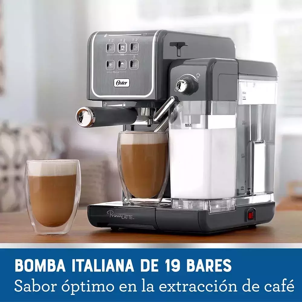 Disfrutá de una experiencia barista en casa con la nueva Oster PrimaLatte Touch. Con bomba de 19 bares, tanque de leche de 600 ml y sistema de espuma automático, podés preparar cappuccinos, lattes y espressos perfectos, usando café molido o cápsulas. ¡Todo al alcance de un toque!