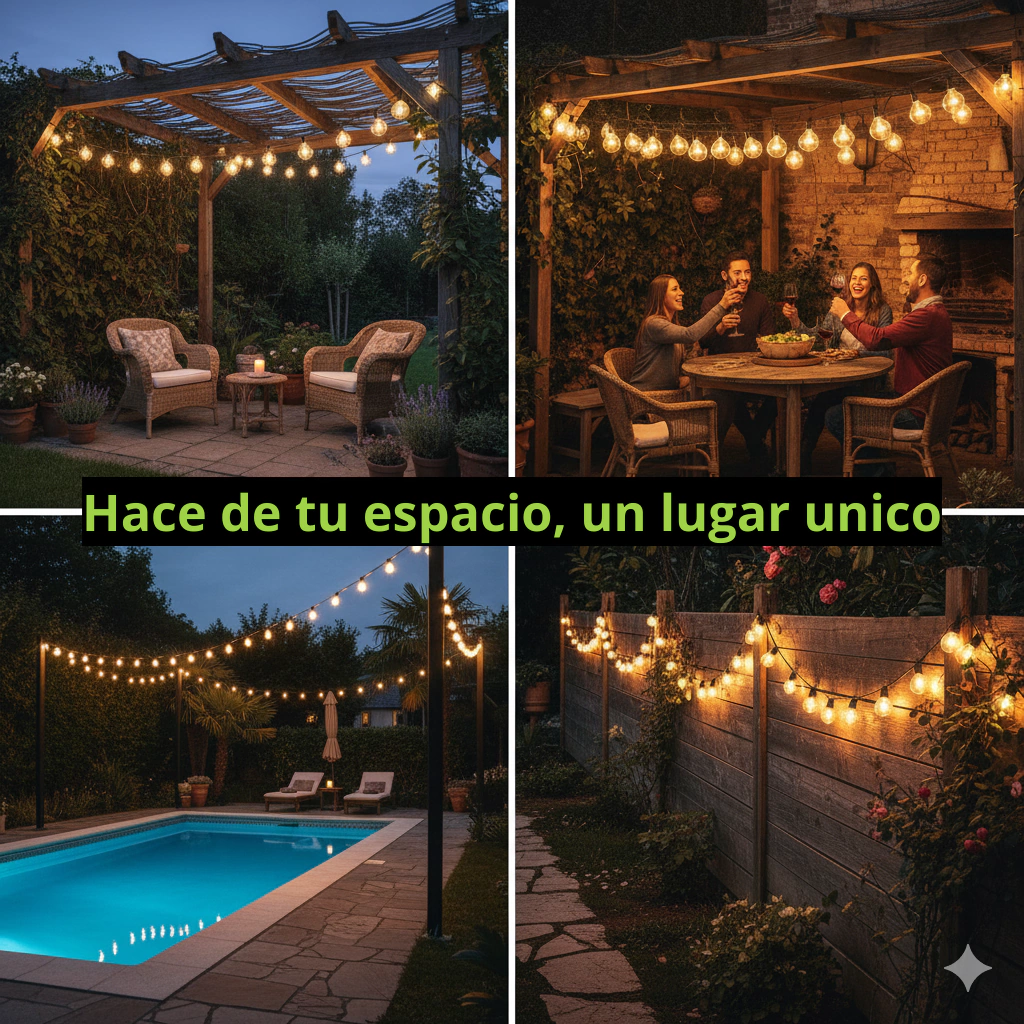 ¿Empezás con 10 metros pero soñás con 30? No hay problema. Gracias a sus conectores, podés unir fácilmente varias guirnaldas usando un solo enchufe. ¡Ideal para grandes patios, bares o eventos!