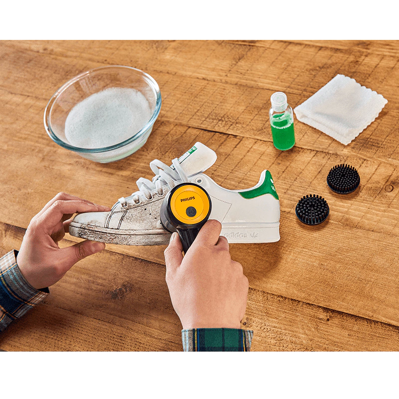 El Philips GCA1000/60 es un cepillo rotatorio diseñado especialmente para limpiar zapatillas sin dañarlas. Su diseño portátil y su motor potente hacen que eliminar la suciedad sea rápido y fácil, incluso en las zonas más difíciles.