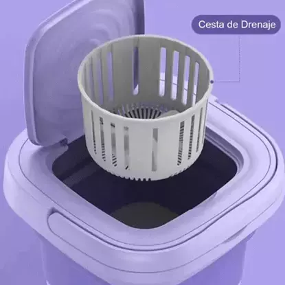 Nuestra mini lavadora portátil con CANASTA DE CENTRIFUGADO INCLUIDA, Ayuda a extraer el exceso de agua de la ropa, lo que reduce el tiempo y la energía necesarios para secar la ropa al aire libre o en una secadora convencional y su diseño portátil te permite llevarla contigo donde quiera que vayas.