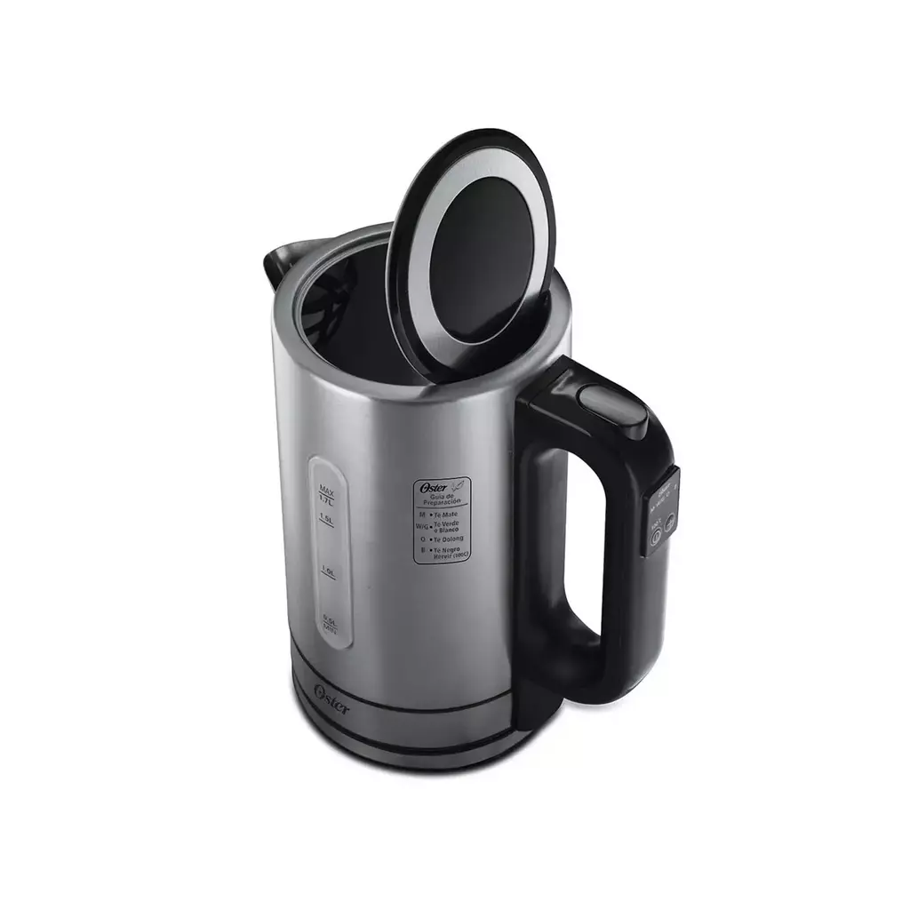 Esta pava eléctrica Oster de acero inoxidable no solo hierve rápido gracias a sus 1850W, sino que también te permite elegir la temperatura ideal. Su ventana iluminada te muestra cuánta agua queda, y su diseño moderno encaja en cualquier cocina.